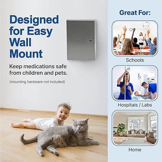 - Locking Medicine Cabinet for Safety & Compliance – Securely store narcotics, prescription drugs, and controlled substances in this durable, wall-mountable medicine safe. (Mounting hardware not included)