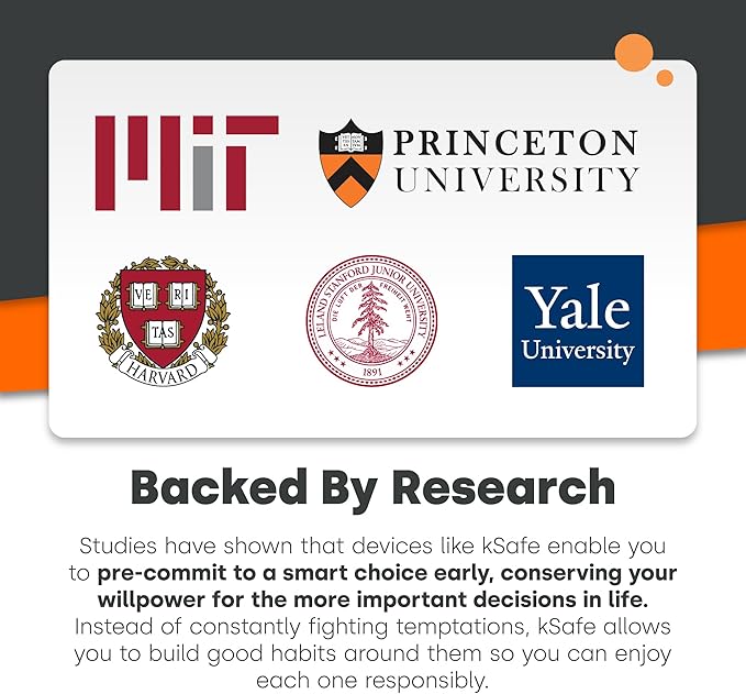 - SCIENTIFICALLY BACKED RESULTS: The kSafe container is a precommitment device, so you can make smart decisions before the temptation strikes. Studies from Princeton, Harvard, Stanford, and Yale show that precommitment devices are the best way to fight temptation by combating decision fatigue and conserving willpower.