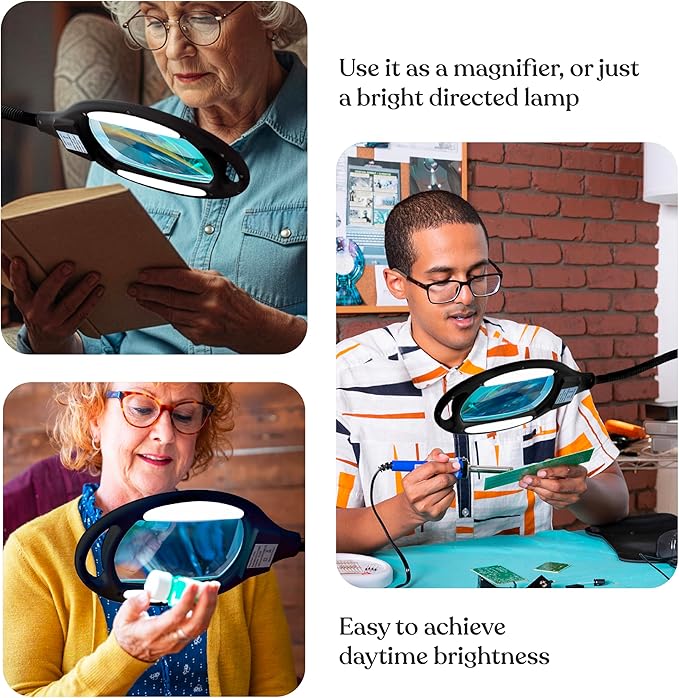 - Magnifying Glass for Reading: This large magnifying glass offers crisp, distortion-free clarity, making it a reliable choice for anyone who depends on strong magnifiers. It functions as a big magnifying glass or even a giant magnifying glass for detailed tasks, while doubling as a crafting magnifying glass with light or craft magnifying glass for close-up projects. Also works perfectly as a sewing lamp or hobby light for hands-free, precision-focused work.