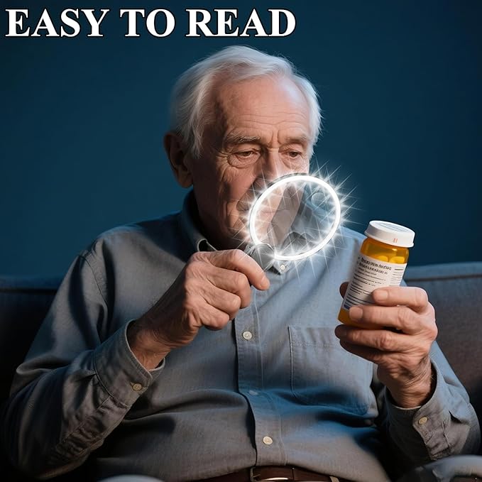 - THOUGHTFUL GIFTS FOR SENIORS WITH VISION SUPPORT: A practical solution for aging eyes! Help loved ones improve daily convenience in reading coupons, manuals, medical instructions, and coin inspection. Trusted by caregivers as the magnifying glass with light for seniors with presbyopia or low vision. Included: Magnifier, USB-C Cable, Microfiber Cloth, Quick Guide.