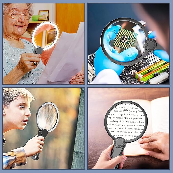 - HIGH-POWER MAGNIFICATION: Magnifier with light experience high-clarity vision with optical-grade precision, designed to enlarge tiny text on prescriptions, pill bottles, and intricate soldering work. Ideal for low-vision users seeking minimal-distortion clarity for books, maps, electronics repair, and crafts – a highly recommended magnifying glass for close work including detailed soldering tasks.