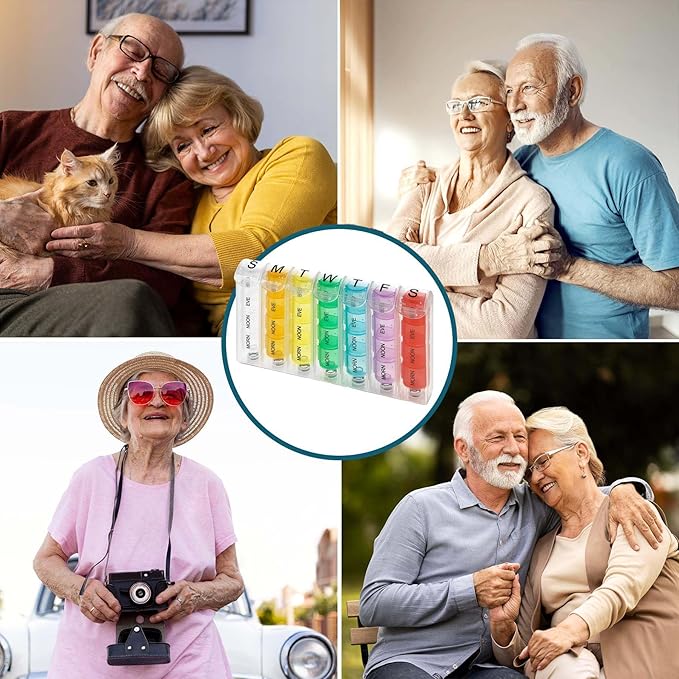 Weekly Pill Organizer - Pill Planners for Pills and Vitamins Day Week, 4 Times-a-Day Medication Reminder, AM PM Compartments Monday to Sunday for Travel or Purse