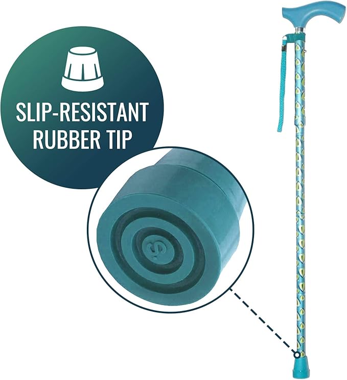 - BOLD, CONTEMPORARY AND COLORFUL PATTERNS coupled with high quality materials set this beautiful walking cane apart. Each cane pattern is designed with attention to detail featuring color coordinated wood handles, wrist straps, and anti-slip rubber feet creating the perfect giftable item.