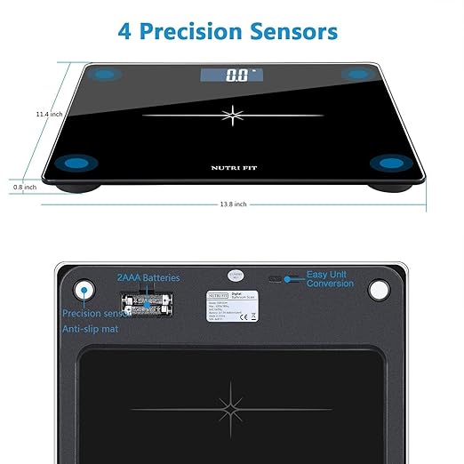 NUTRI FIT Extra-Wide/Ultra-Thick Digital Body Weight Bathroom Scale with 3 Inch Large Easy Read Backlit LCD Display Max Capacity 400lb Step-on Technology, Black