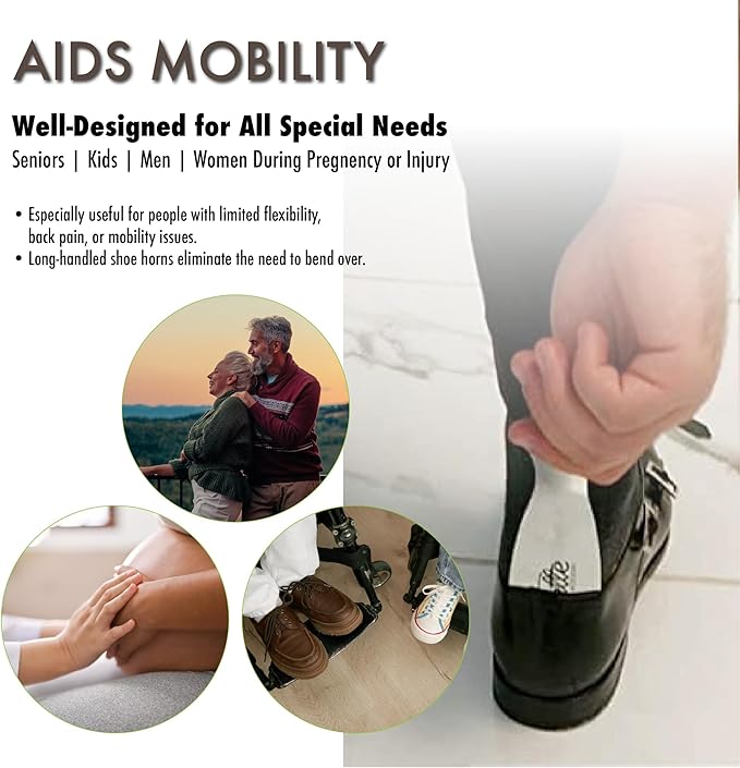 - SHOE HORN METAL - Great shoe horn long handle for seniors or anyone with mobility issues that can use a boost in putting on their shoes. Putting shoes on with this great shoe horn, get ready in no time for a date, an interview, or a trip.