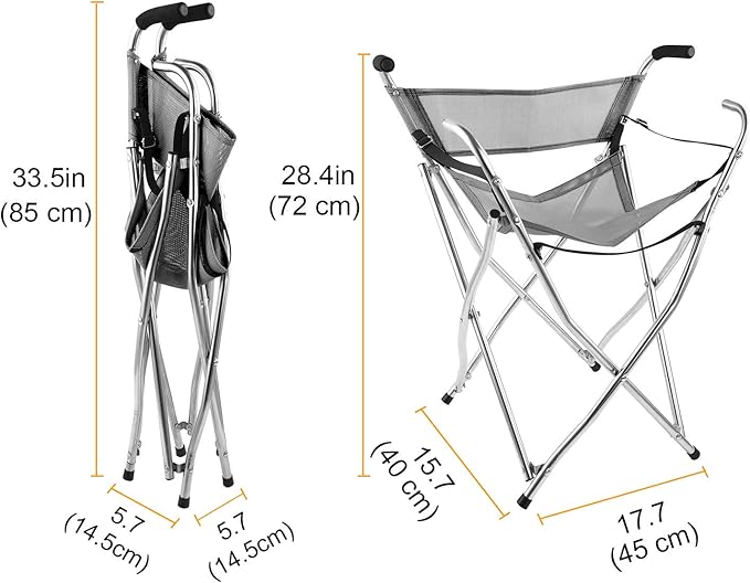 - Walking stick height:33.5",Seat Size:15.7"x17.7", Suitable for people below ( 6'1'' ) 185cm.