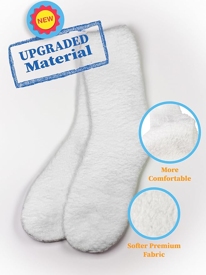 - PREMIUM SOFT MATERIAL : (Updated Design) Made from a high-quality blend of ultra-soft polyester and microfiber, these fuzzy socks deliver exceptional warmth and comfort. The plush fibers feel luxurious against the skin and provide just the right amount of stretch for a secure, non-restrictive fit. Designed to lock in heat and wick away moisture, these socks keep your feet dry, cozy, and warm all day long making them perfect for cold winter mornings or relaxing evenings by the fire.