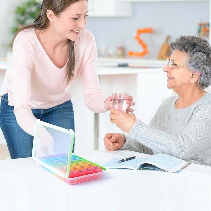 - Easy To Track By Month: Our 28 day pill organizer can easily track your monthly medicine, BOLD letter marks remind you what to take by the day of the month, you just need to fill our pill box once a month. (Product size: 8.7"x 5.5"x 1.4" inches, individual size: 1.2"x 1.1"x 1.1" inches.)