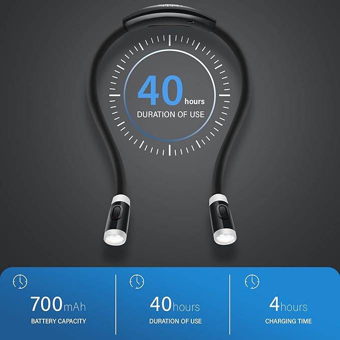 - [Ergonomic Design & Eye Caring] Our neck reading light is designed with your comfort in mind. The adjustable neck and head allow you to position the light at the perfect angle for your reading pleasure. Say goodbye to eye strain and discomfort as you enjoy your favorite books. The book light features advanced LED technology that emits a soft, flicker-free light. This reduces eye fatigue and minimizes the risk of eye strain, making it ideal for extended reading sessions.