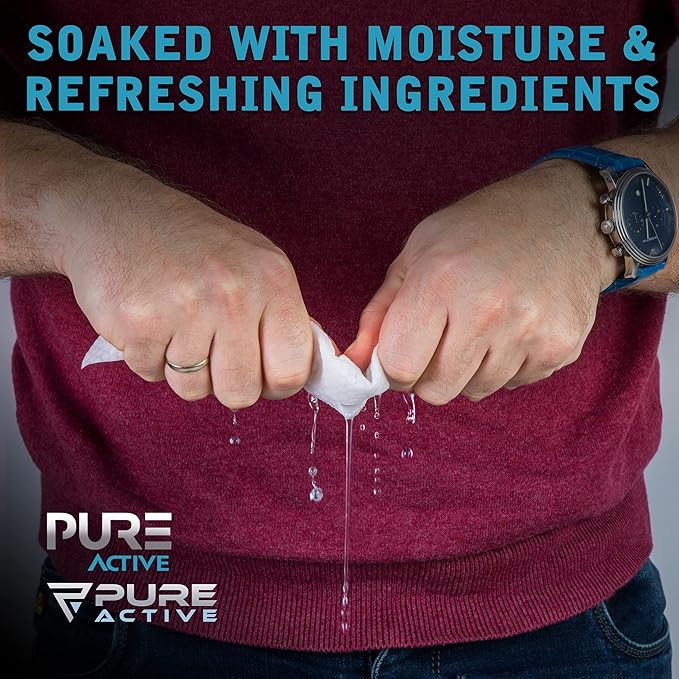 - π¦ PURE ACTIVE 40 INDIVIDUALLY WRAPPED BODY WIPES - Use our super moist extra large 8x10'' body wipes when you are in a hurry or when there is no available fresh water. Keep your personal hygiene at it's best.