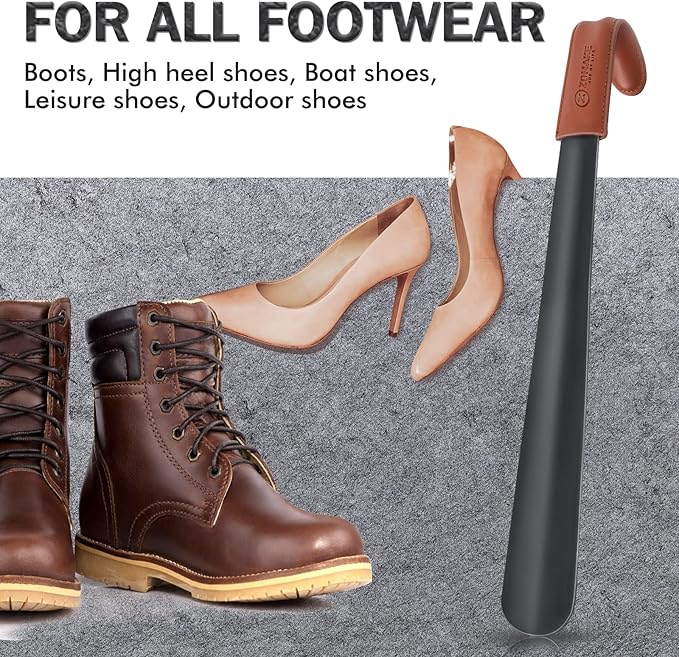 - 【Fit for Most Type Shoes】Made for universal use, this sturdy metal shoe horn lets you slip into shoes, boots, or sneakers without bending. People love how this thoughtful shoehorn long-handle saves time and effort, doubling as a practical shoe horn for boots.