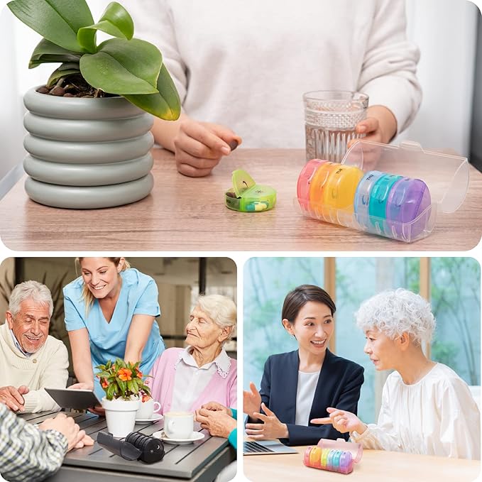 - Over 10 Years of Use: Our weekly pill box adopts high-quality silkscreen that won’t wear off after frequent soap washes and daily use. Odorless plastic is built for 20,000 open-closes and prevents medicines residue, making cleaning easy and guaranteeing safe pill storage.