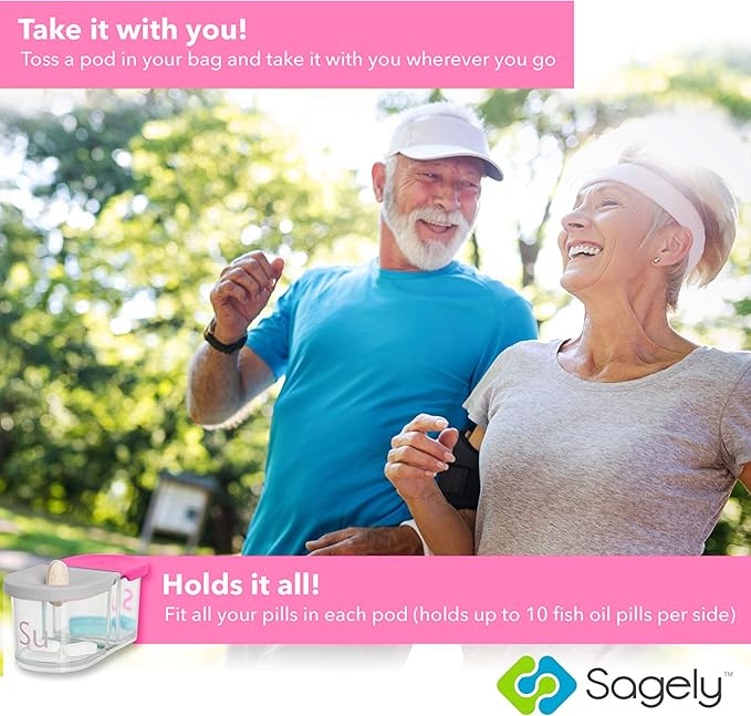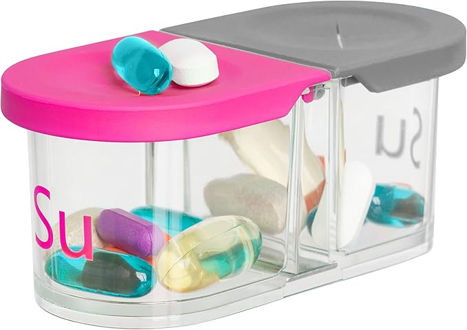 Sagely Smart XL Weekly Pill Organizer AM/PM - Medicine Storage Organizer with Reminder Alarm App (Large Enough to Fit Fish Oil, Cod Liver Oil, Vitamin D Supplements & Vitamins) (Pink/Gray)