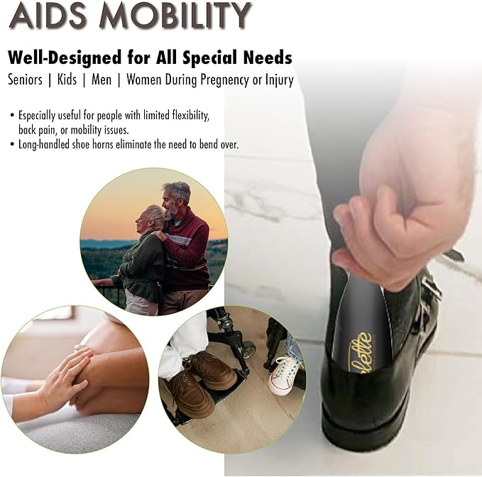 - SHOE HORN METAL - Great shoe horn long handle for seniors or anyone with mobility issues that can use a boost in putting on their shoes. Putting shoes on with this great shoe horn, get ready in no time for a date, an interview, or a trip.