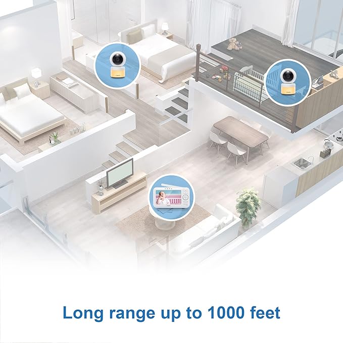- [UPGRADED BATTERY} 5" HIGH-RESOLUTION LCD SCREEN WITH UP TO 12 HRS BATTERY LIFE] Clearly see every little detail of your baby right from the high resolution 5-inch parent unit. Continuously monitor up to 12 Hrs. on video mode and 21 Hrs. on audio mode with single battery charging. The screen can be switched off and monitor on audio only mode. SOUND ACTIVATED FEATURE: Screen is automatically switched on when noise is detected.