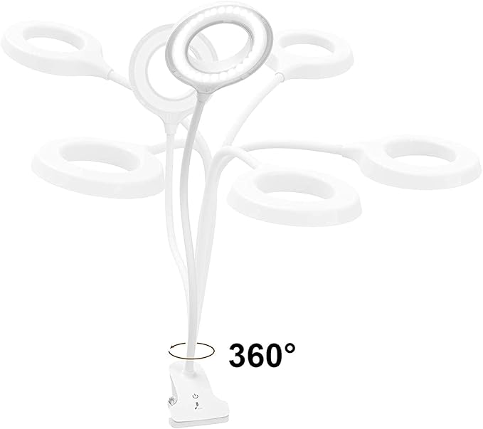 - [360° Gooseneck and with Clamp] With the 360° arm the lamp can be adjusted to your preferred angle.Whether it is placed on the bedside or on the study table is a good option.You can clip it to a computer, a desk,the headboard, etc. and it can also be placed steadily on a flat surface .