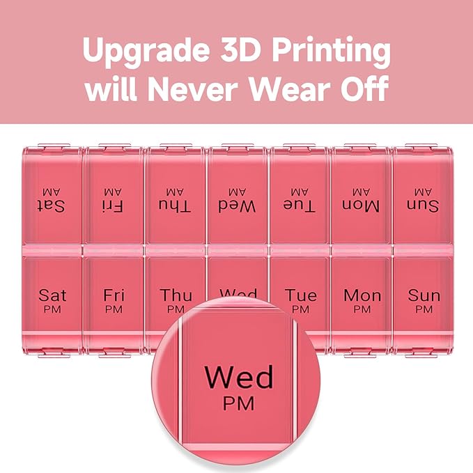 - [Twice a Day Medication Planner]: 14 compartments with 2 different colors and week day labels, make managing your weekly prescription medicine simple