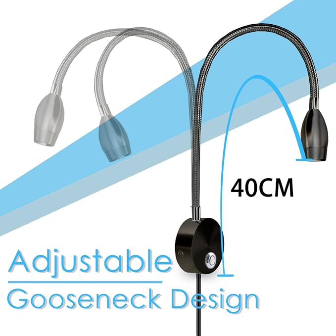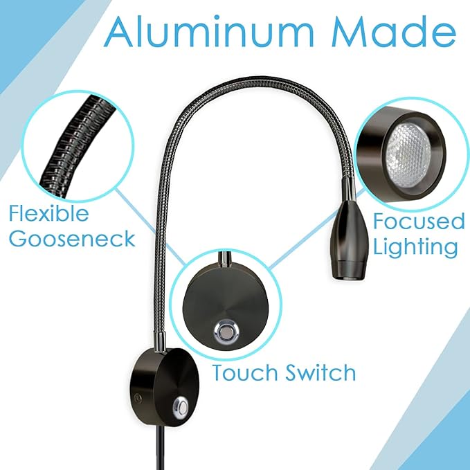 - Directional Lighting: Designed with the 13 inches flexible goose neck, this LED bedroom light can be easily adjusted to the angle you prefer, providing you with enough lighting for different reading posture