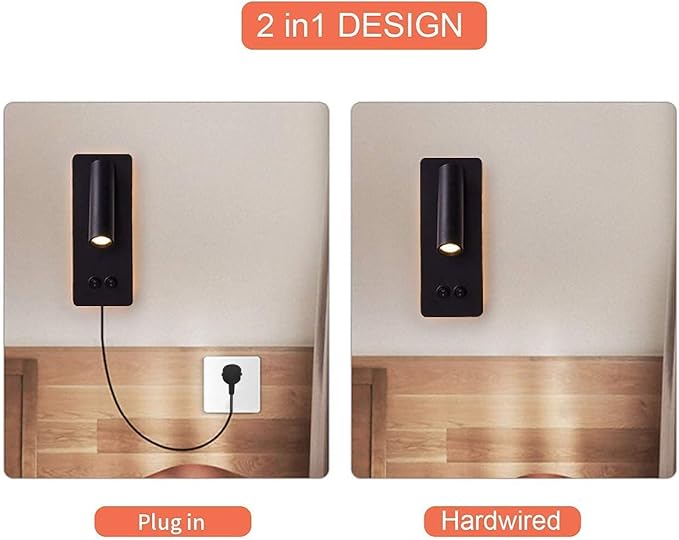 - 2-in-1 Design Reading Wall Lights: Wall light with plug in cord 71" ,you can just plug it into the wall outlet, without complex installer. No need to spend a lot of money to hire a electrician. Also you can Cut the plug wire wall mounted hardwired. The package include all installation parts.