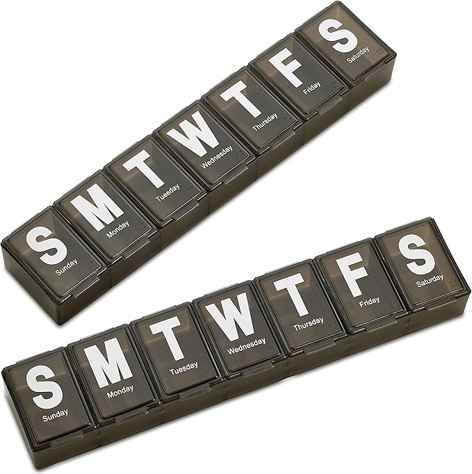 - NEVER MISS A DOSE: The problem with other daily pill organizer is you can't see what is in them. Our pill container solves that problem! Why? That’s because our medication organizer was made using separate and translucent lids. Because we make our Weekly Pill Organizer this unique way, it means that it's easy to see if you took your daily dose.