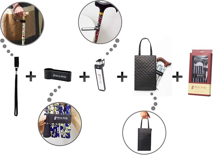 - Comes as a Set: This comprehensive accessory set includes a convenient cane bag for easy transport, a folding cane clip for secure attachment, and a Merry Sticks Smart Reflective Cane Holder for enhanced visibility and safety. Everything you need for a seamless and stylish experience is included in one package.