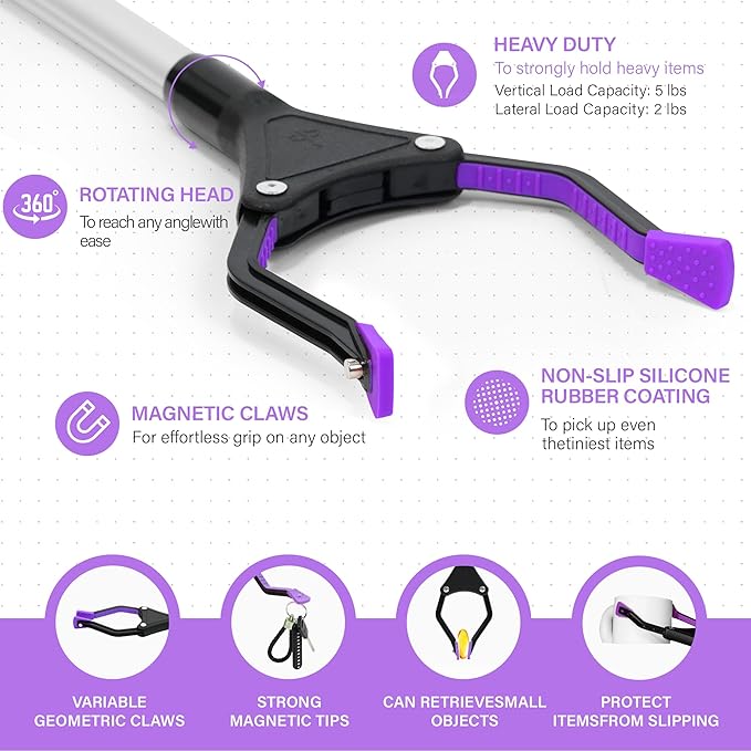 32 inch GrabRunner Folding Reacher Grabber Tool with Magnet for Seniors, Disabled, After Surgery Recovery(Purple)