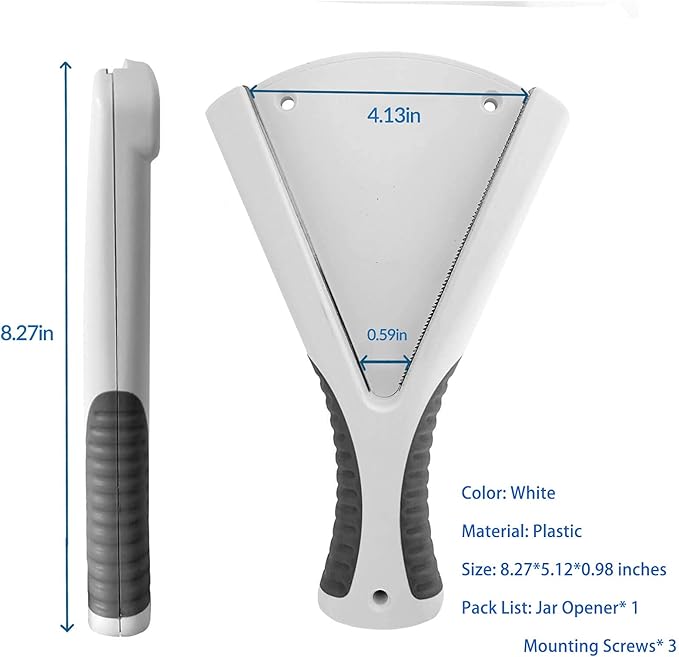 - 【Two Ways to Use】 ① As Hand Held Grip Jar Opener: You can hold the jar opener in your hand for opening lids. ② Under Cabinet Jar Opener: You can choose to install this lid opener tool under a cabinet, cupboard, counter, or shelf for opening caps and saving storage space. (Three mounting screws are provided in the package.)
