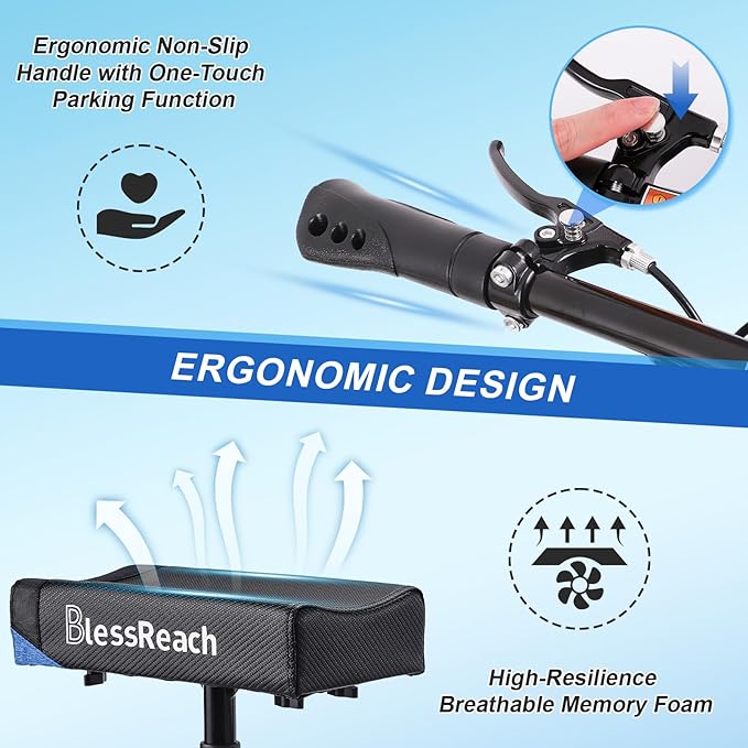 - Knee Walker with bag:The BlessReach knee walker with detachable canvas bag. The canvas bag has a double-layer structure, which is easy to disassemble, portable, durable and beautiful.