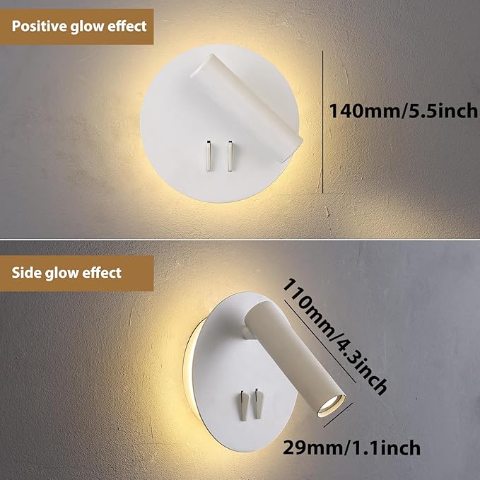 - Modern Design: Modern home decor, wall mount light fixture is with LED light source, twin slim switches and in round shape, the whole lamp body in metal, which is very easy for cleaning, Small and minimalist design will not take up much space for bedside
