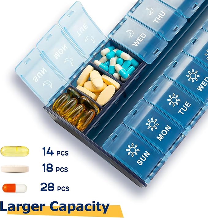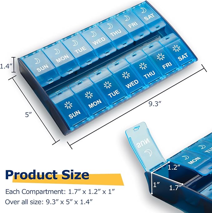 - 【 Giant Day Night Pill Remind Printing Never Confuse】Clear am pm icon, week day marks help you easily plan your pills, vitamins or other supplements. Pill boxes and organizer 2 times a day, as your best pill planner for daily use.