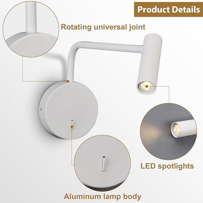 - Modern Design: Modern home decor, wall mount light fixture with LED light source, slim switches and in Flexible swivel arm, the whole lamp body in metal, which is very easy for cleaning, Small and minimalist design will not take up much space for bedside
