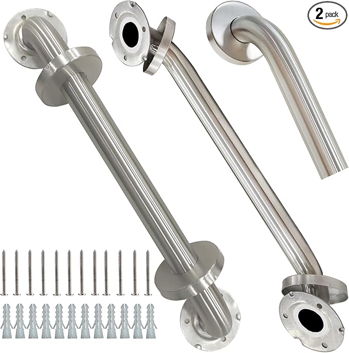- 【Premium Material & Concealed Screw 】Bathroom grab bars are made of polished chrome stainless steel 304, durable and sturdy, corrosion-resistant and rust-proof. Shower wall handle bar use concealed secure design allows for easy installation at any angle, allows you to cover the mounting hardware for keeping clean and tidy.