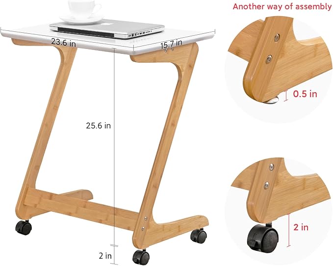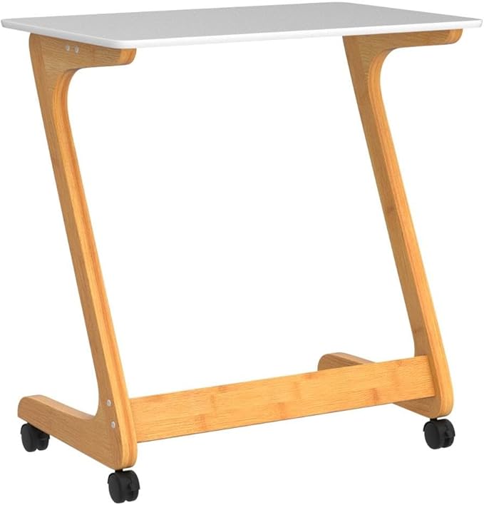 Nnewvante TV Tray, Sofa Side End Laptop Table with Wheels, Desk Snack Tray for Small Spaces Living Room and Bedroom, 23.5 Inch x 15.8 Inch (Standard with 360° Casters, Bamboo/White)