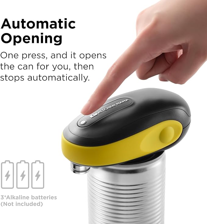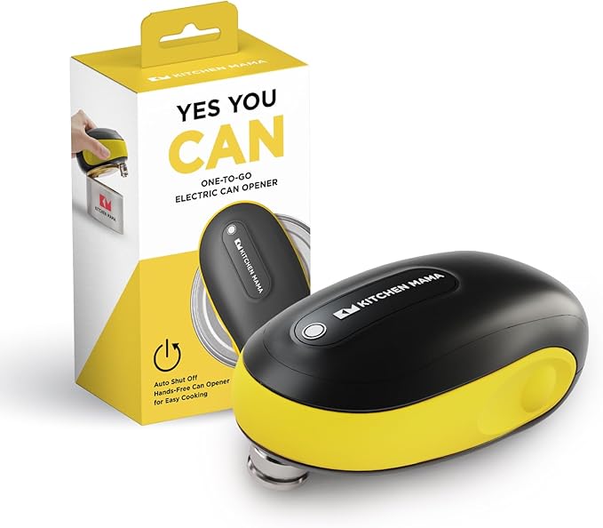 Kitchen Mama One-To-Go Electric Can Opener: One Touch, Auto Stop, Smooth Edge, Lid Lift, Safety, Automatic, Magnetic, Cordless, Battery Operated, Kitchen Appliance for Senior with Arthritis (Yellow)