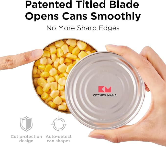 - Ultra-Safe: No more cut fingers; patented tilted blade detects any can shape and leaves smooth edges; exclusive cut protection feature turns the automatic can opener off in case of accidental cuts
