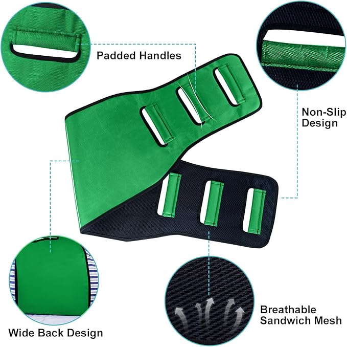 Transfer Sling for Seniors, Transfer Belt Widened Back Curve Design Sling for Movement, Transfer Boards for Bedridden Patient, Bed Assist Handle, Back Lift Belt for Patient Care (Green)