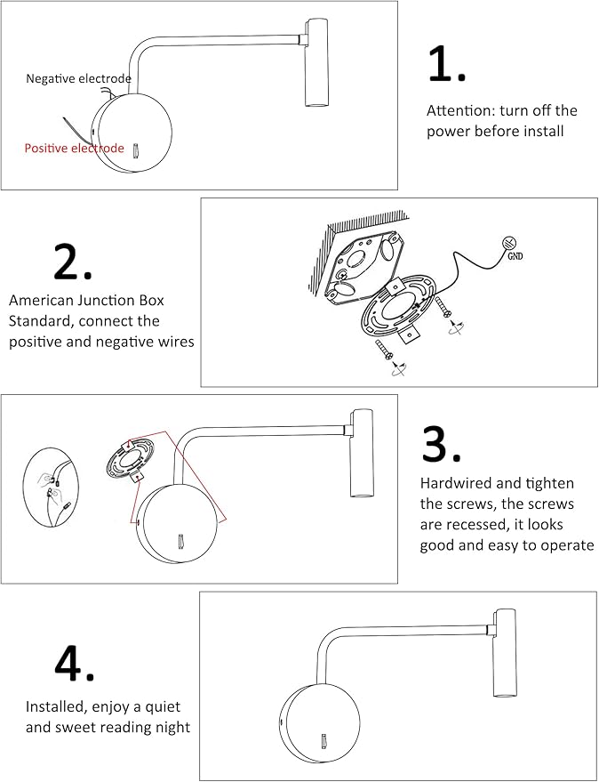 - Modern Design: Modern home decor, wall mount light fixture with LED light source, slim switches and in Flexible swivel arm, the whole lamp body in metal, which is very easy for cleaning, Small and minimalist design will not take up much space for bedside