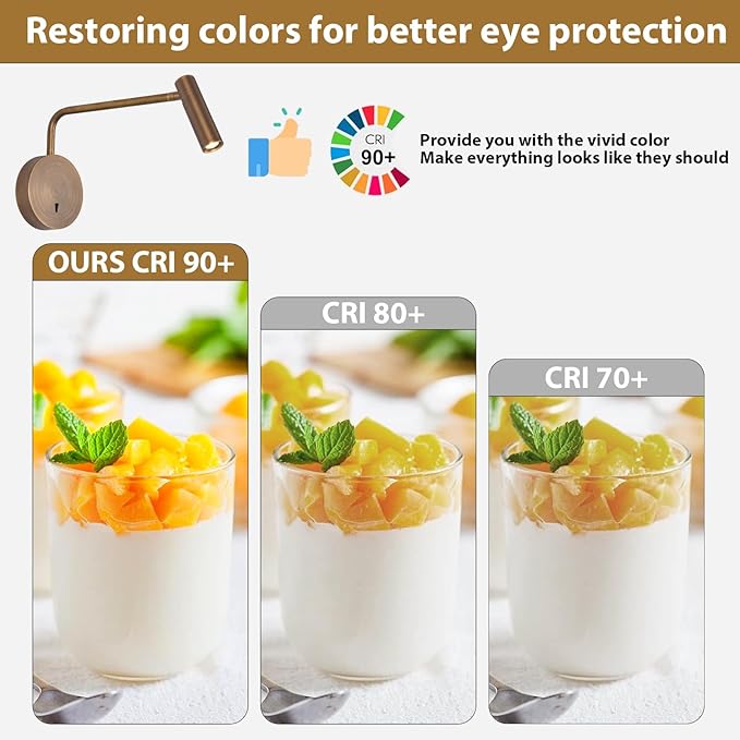 - Flexible Swing Arm Wall Sconce: You can swing the arm Left to Right 180 degrees, adjust the lamp head up and down 270 degrees, so freely adjust the angle of lamp to meet your lighting needs.