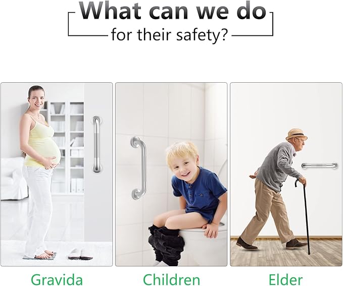 - WIDE USAGE APPLICATIONS: The grab bars can not only be used for bathtubs and showers to protect your safety, but also can be used along stairways, or in the kitchen, living room, bedroom, laundry room for additional fall prevention. Especially for the handicap, elderly, pregnant women, and children.