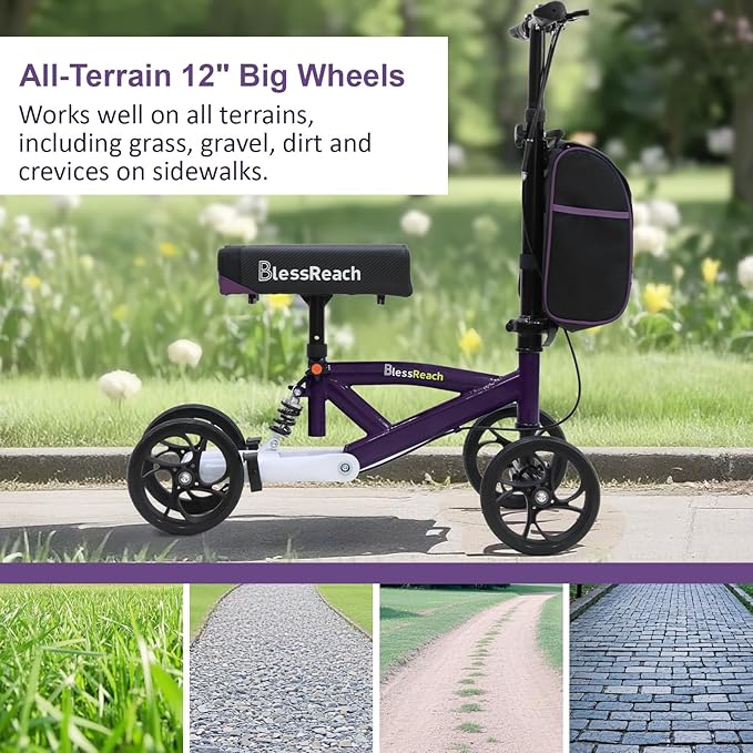 - Safety and Stability - This BlessReach knee scooter includes efficient dual braking system to help safely slow down or stop, front 8" rear 8" wheels suitable for indoor and outdoor smooth ground.