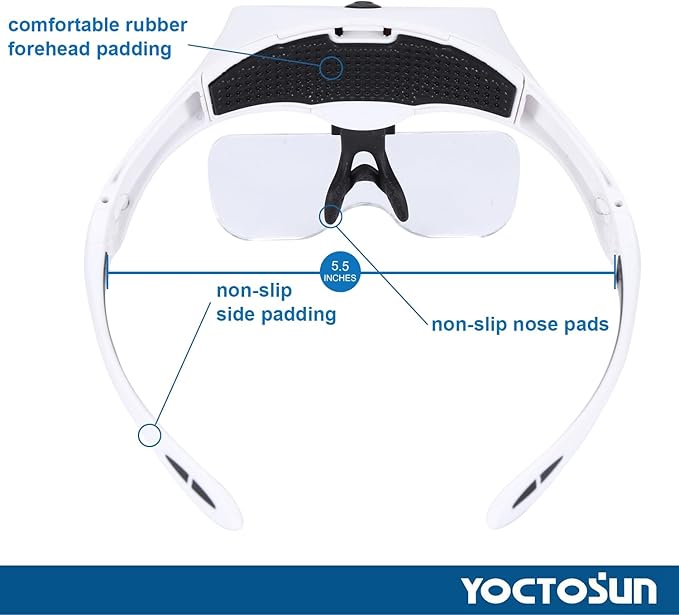 YOCTOSUN Magnifying Glasses with 4 LED Lights, Headband Magnifier with 5 Detachable Lenses 1X, 1.5X, 2X, 2.5X 3.5X -Rechargeable Hands Free Lighted Head Magnifier Glass for Crafts, Cross Stitch, Hobby