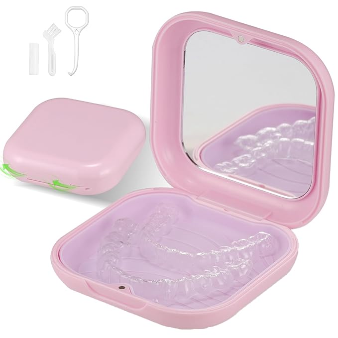- BUITE-IN MIRROR - Helps you easily wear and remove the retainer, and check if food is stuck in your teeth. Package included: 1× pink retainer case, 1× retainer remover tool, 1× retainer chewie, 1× retainer brush.
