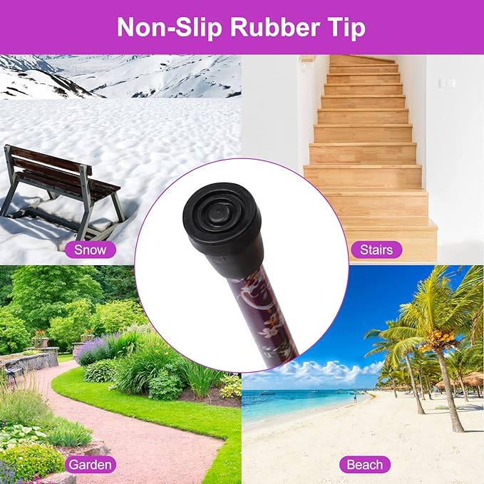 - The tip is made of sturdy TPR anti-slip material, providing great traction and stability; it could be replaced to other types of cane tips to meet various requirements