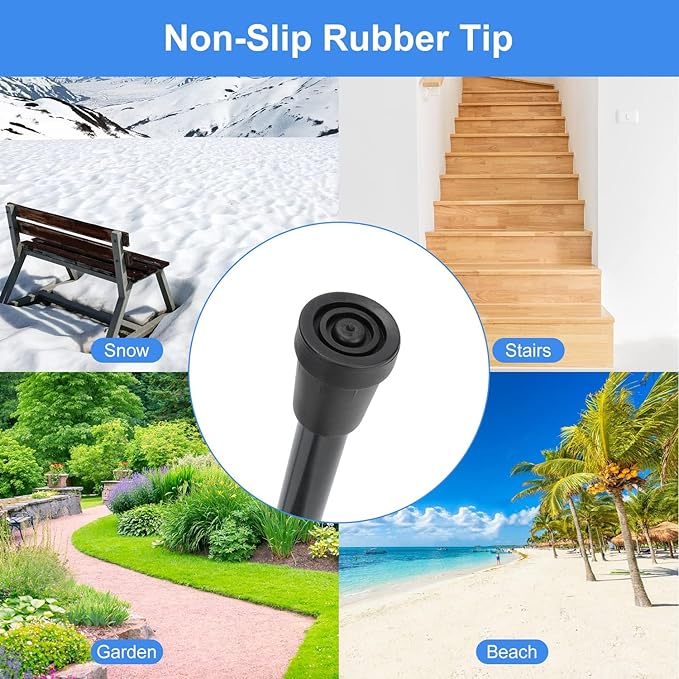 - The tip is made of sturdy TPR anti-slip material, providing great traction and stability; it could be replaced to other types of cane tips to meet various requirements