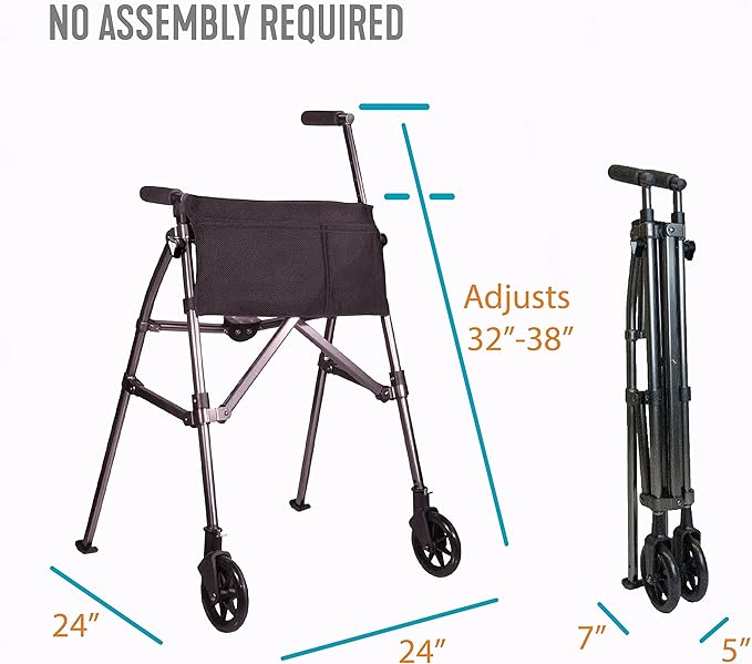 - Compact Folding Walker: The Wonder Walker Plus is the world's most compact folding walker; the patented EZ Fold-N-Go technology allows it to fold 4 times smaller than the average walker into a 5 x 7 inch footprint to help save space while on the go