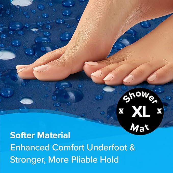 SlipX Solutions 27" Oversize Square Shower Mat, Non-Slip Mat for Elderly & Kids, 100+ Power Grip Suction Cups for Smooth Surfaces, Machine Washable, Solid Navy Blue