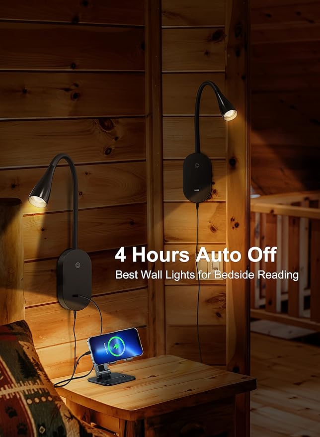 - 【4 Hours Auto Off & Eye Caring 】4 hours auto off the bed side lamp to let you fall asleep naturally while bedside reading books at night or remind you of break time while working. Professional comfort wall mount lamp anti-dizziness & no flicking with eye protection function. Provide you and your kids with the best lighting experience.