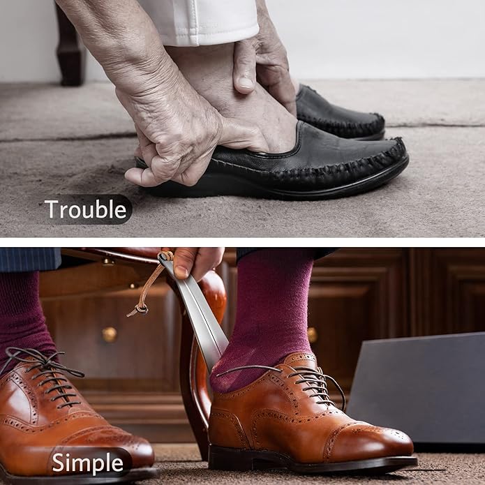 - 【Reduce Bending Over】 The shoehorn long 12 Inches, Easily slide your foot into place, more convenient to wear shoes, helps reduce bending over, relieving back pain and knee pain. Is a wear shoes helper for the Men, Women, Seniors, Pregnancy, Elderly, Kids; and fit more back pain disability special tall people