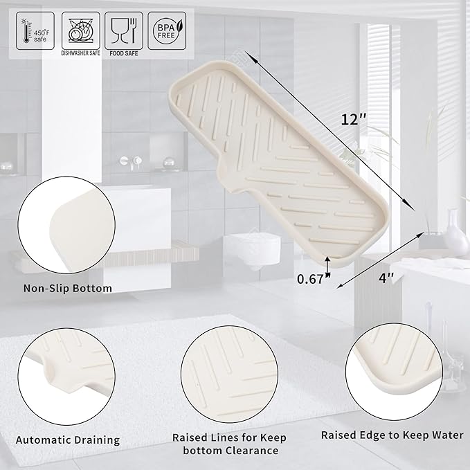 Silicone Bathroom Soap Dishes with Drain Spout-Bathroom and Kitchen Sink Organizer,Sponge Holder,Dish Soap Tray,Perfect for Dispenser,Scrubber,Bottle,Cup on Sink or Counter-Tapioca 12"×4"