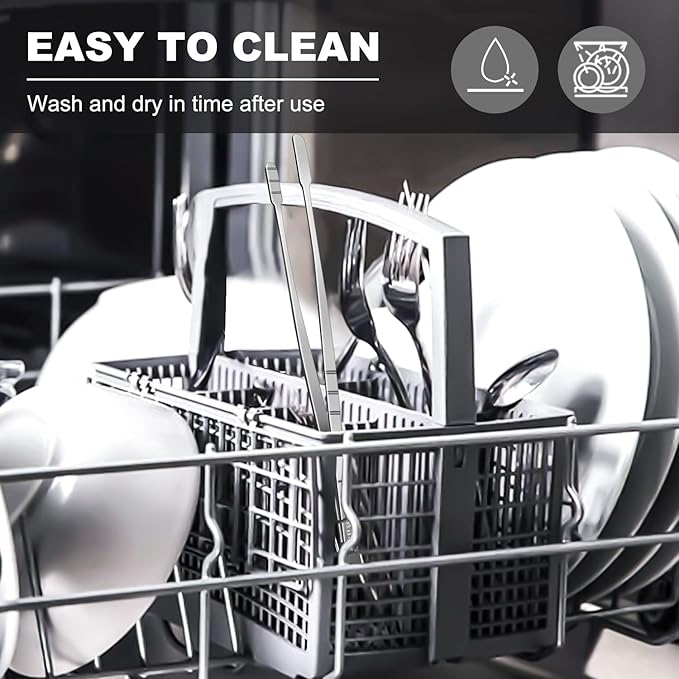 - 4. KITCHEN TWEEZERS DESIGN - The fine teeth on the tip are designed to prevent food from slipping off. the tweezers are designed with pull loop technology for easy storage. and handle is designed with serrations to prevent the hand from slipping off. and ensures perfect grip and control of the handle. After each use, just wipe with water or put it in the dishwasher.